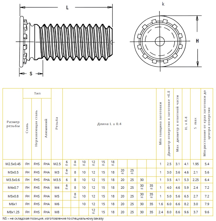 FHA-M6-12 Шпилька запрессовочная резьбовая алюминий М6х12