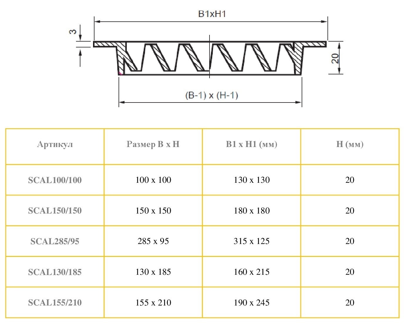 Вентиляционная решетка Aier SCAL, квадратная 285х95 мм